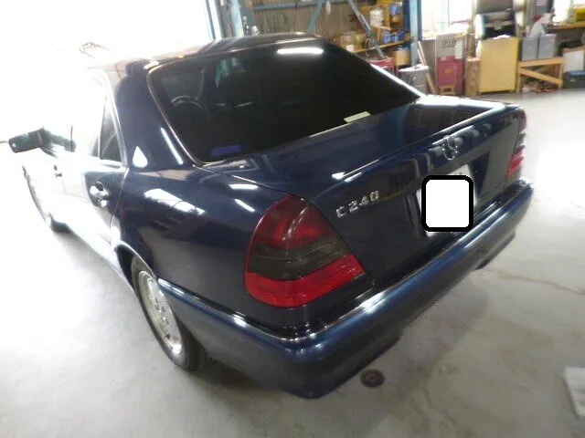 作業場に並ぶベンツC240の後ろ姿。