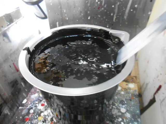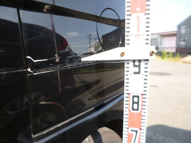 黒いボディに映る景色と、目立つように当てられたスケール棒。