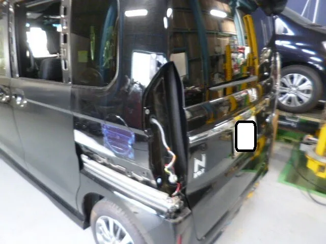 富士市 鈑金塗装 N-BOXの右側面修理、スライドドア交換