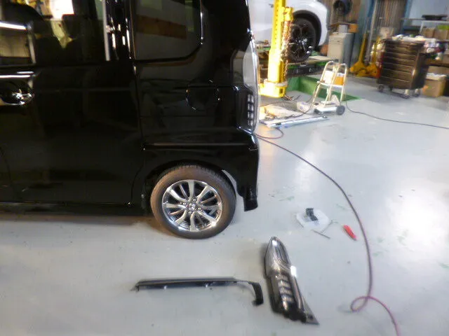 富士市 鈑金塗装 N BOX リヤバンパー交換、右リヤフェンダー鈑金塗装修理