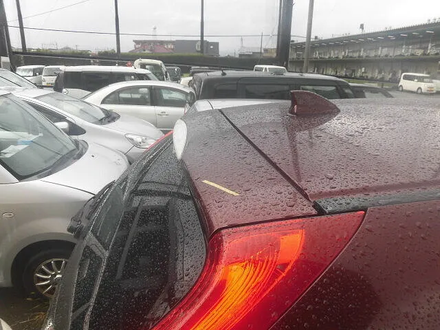 雨に濡れたホンダCR-Vのテールゲートが、ふとした日常の一場面を切り取っています。