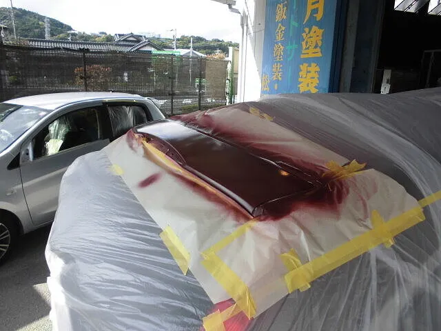 富士市 鈑金塗装 ポルシェ ルーフの塗装修理