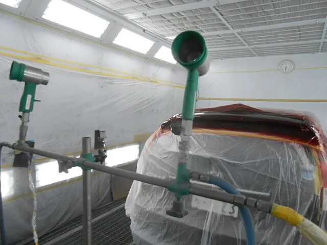 作業場に入る、まず目に飛び込んでくるのがこの塗装ブースの光景です。