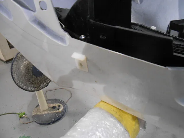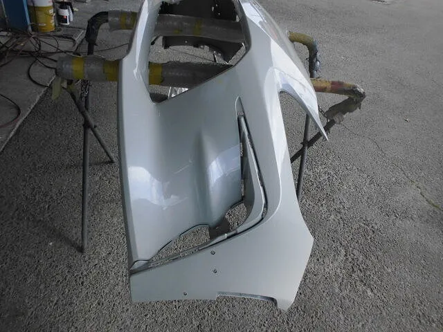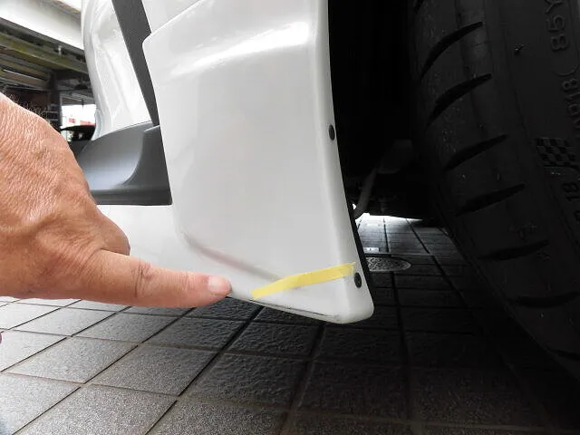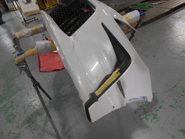 この日はフロントバンパー部分にできた小さな損傷と、その補修作業が進んでいました。