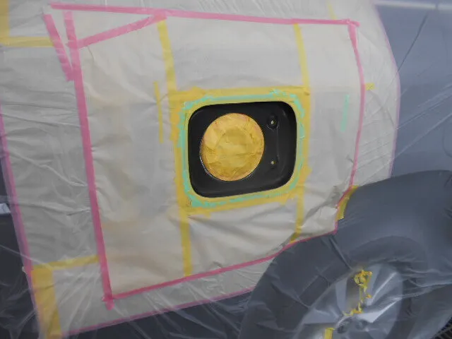 今回ご依頼いただいたのは、右リヤフェンダーの修正とフューエルフィラオープンリッド交換塗装修理。