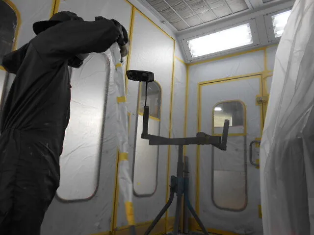 鈑金塗装専用ブースでは、埃やゴミが入らないよう細心の注意を払い、