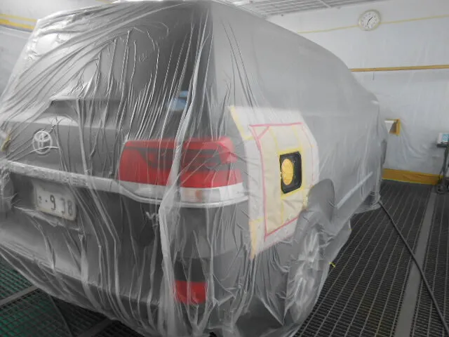 富士市 鈑金塗装 トヨタ ランドクルーザー 右リヤフェンダー修正、フューエルフィラオープンリッド交換塗装修理