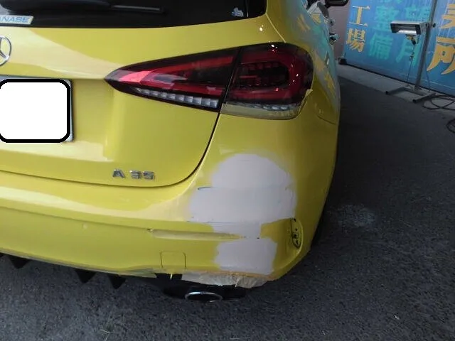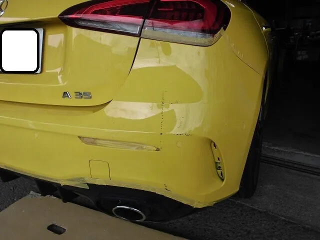 富士市 鈑金塗装 ベンツ A35 リヤバンパーキズ塗装修理