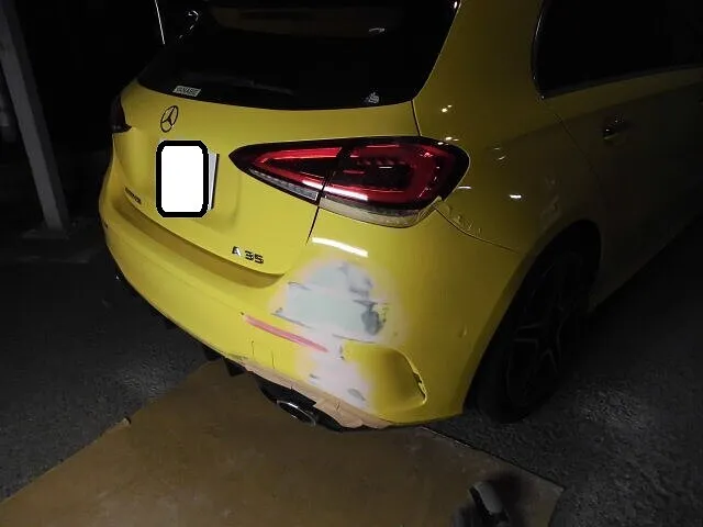 富士市 富士市 鈑金塗装 ベンツ A35 リヤバンパーキズ塗装修理 望月塗装工業所