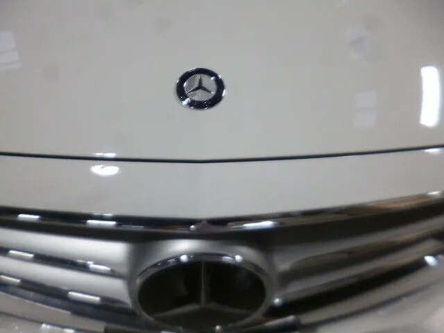 ベンツE300のエンブレムが静かに輝くこの一枚、