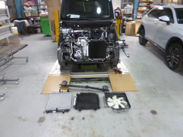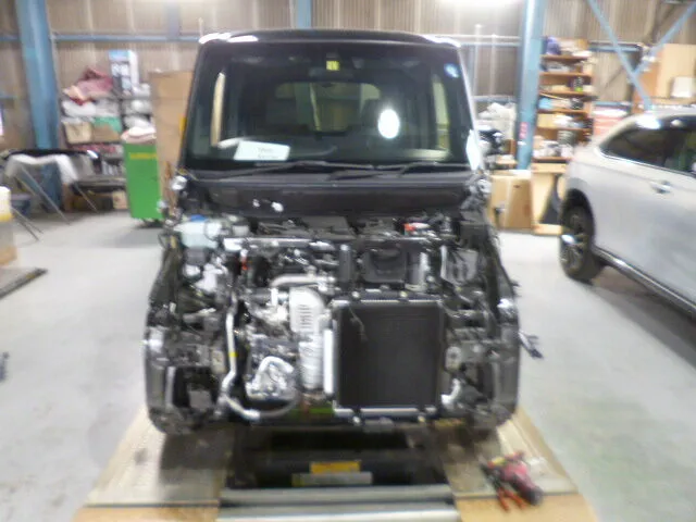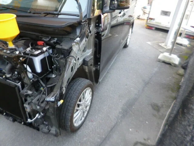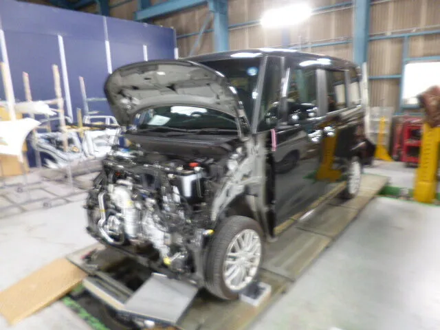 富士市 鈑金塗装 NBOXのフロントバンパー交換、フード、ラジエータサポート鈑金塗装修理