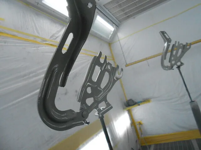 スタッフが手際よくフロントサイドフレームに向き合っています。