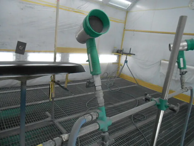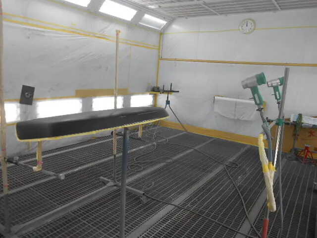 作業場に入ると、まず目に飛び込んでくるのがこの塗装ブースの風景です。