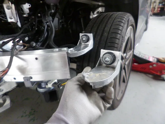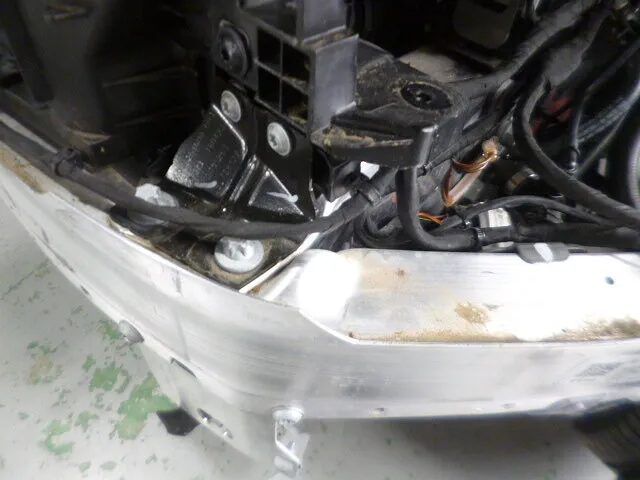 作業場で手にしているのは、ベンツC200のフロントバンパー交換時に