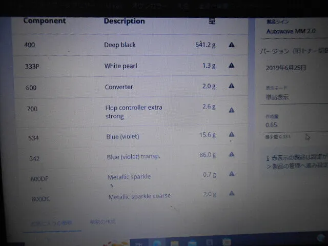 パソコンの画面に映し出された調色データを前に、