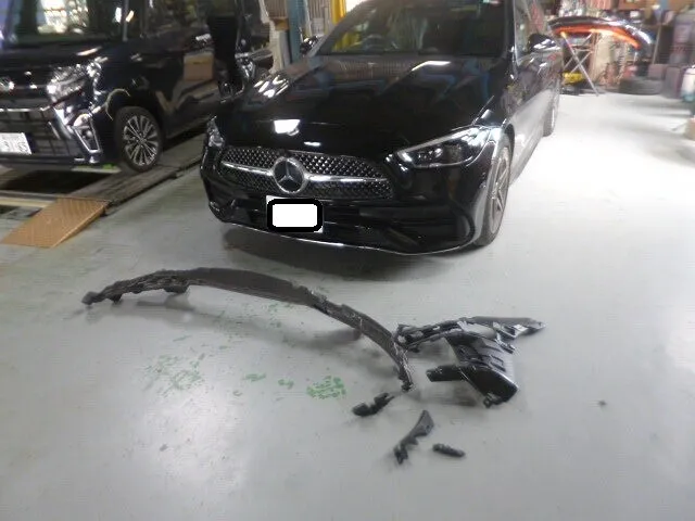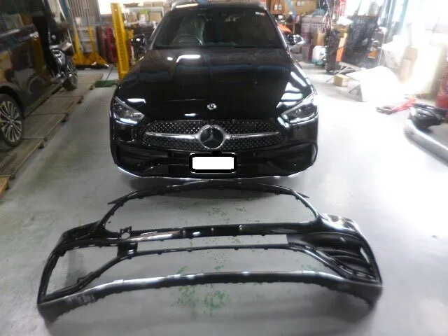 富士市 鈑金塗装 ベンツC200 フロントバンパー交換 塗装修理