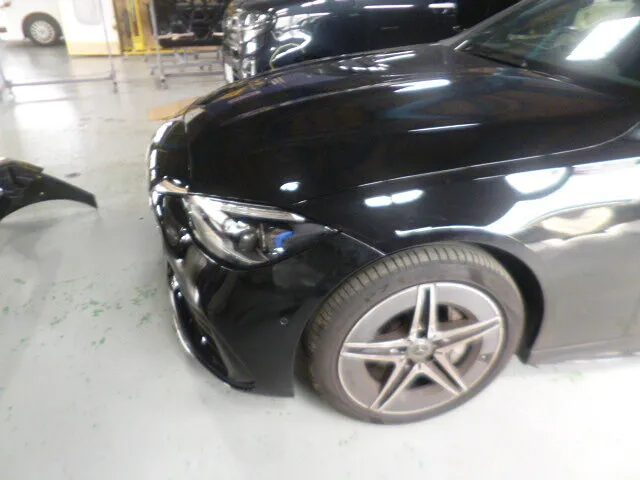 富士市 鈑金塗装 ベンツ フロントバンパー交換、右フロントフェンダー修理塗装