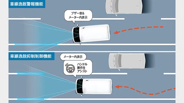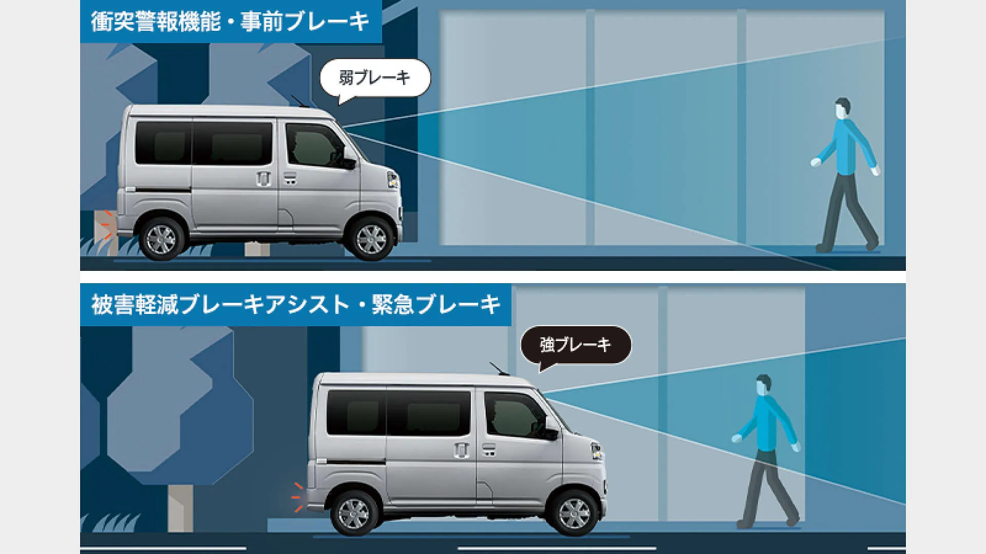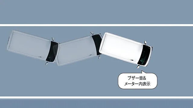 この画像では、万が一の時にも安心できるような衝突警報機能や