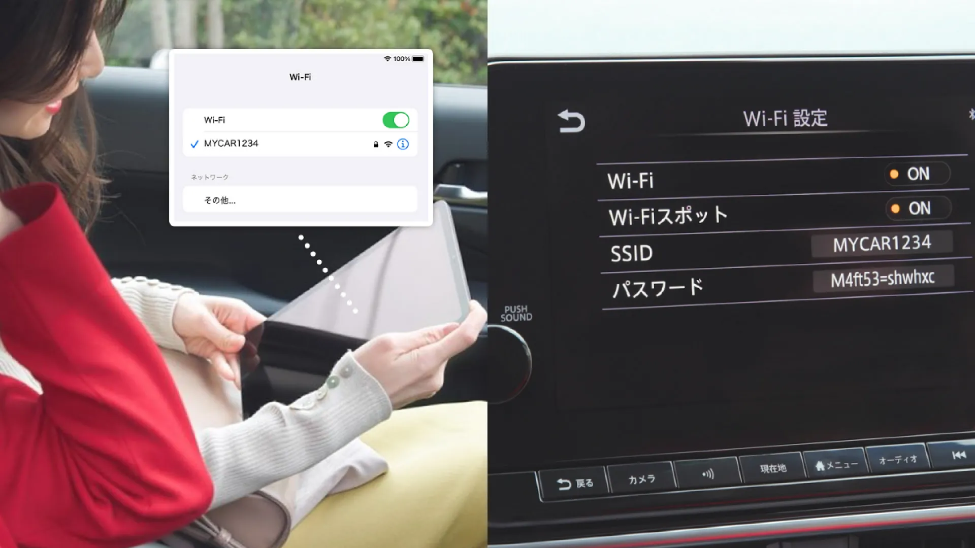 カーリースで利用できる日産 ノートなら、専用のSSID「MYCAR1234」に接続するだけで、