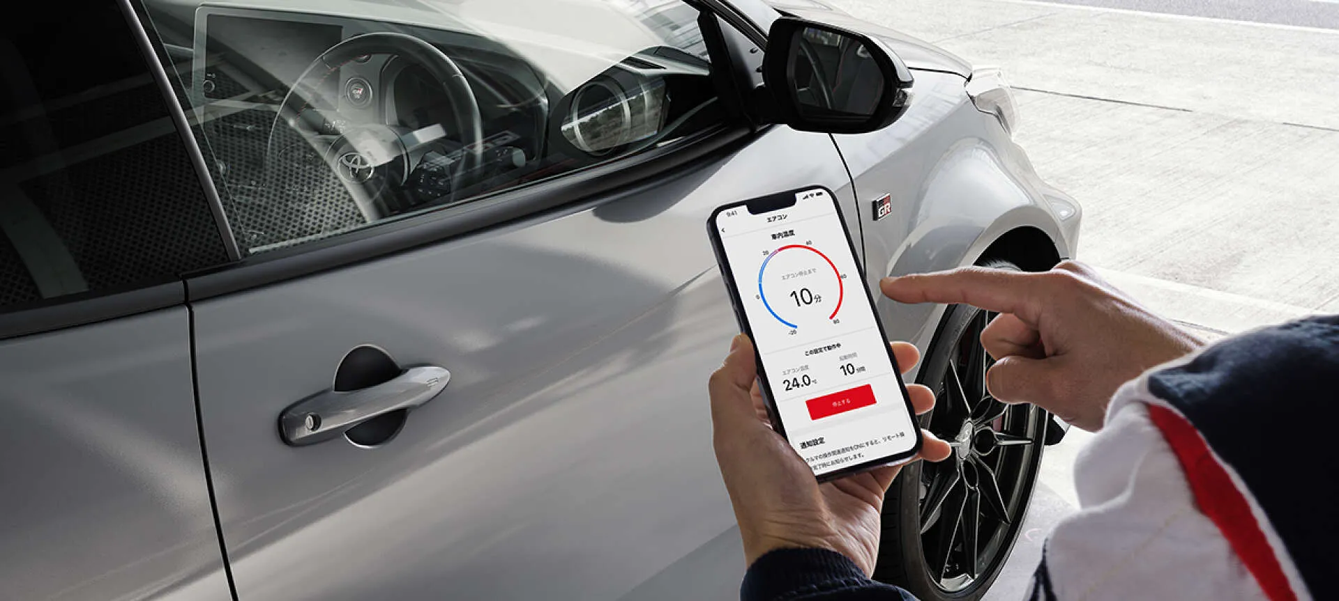 アプリでエアコン操作や各種設定ができるので、忙しい朝でもクルマに乗り込む前から快適な準備が整います。