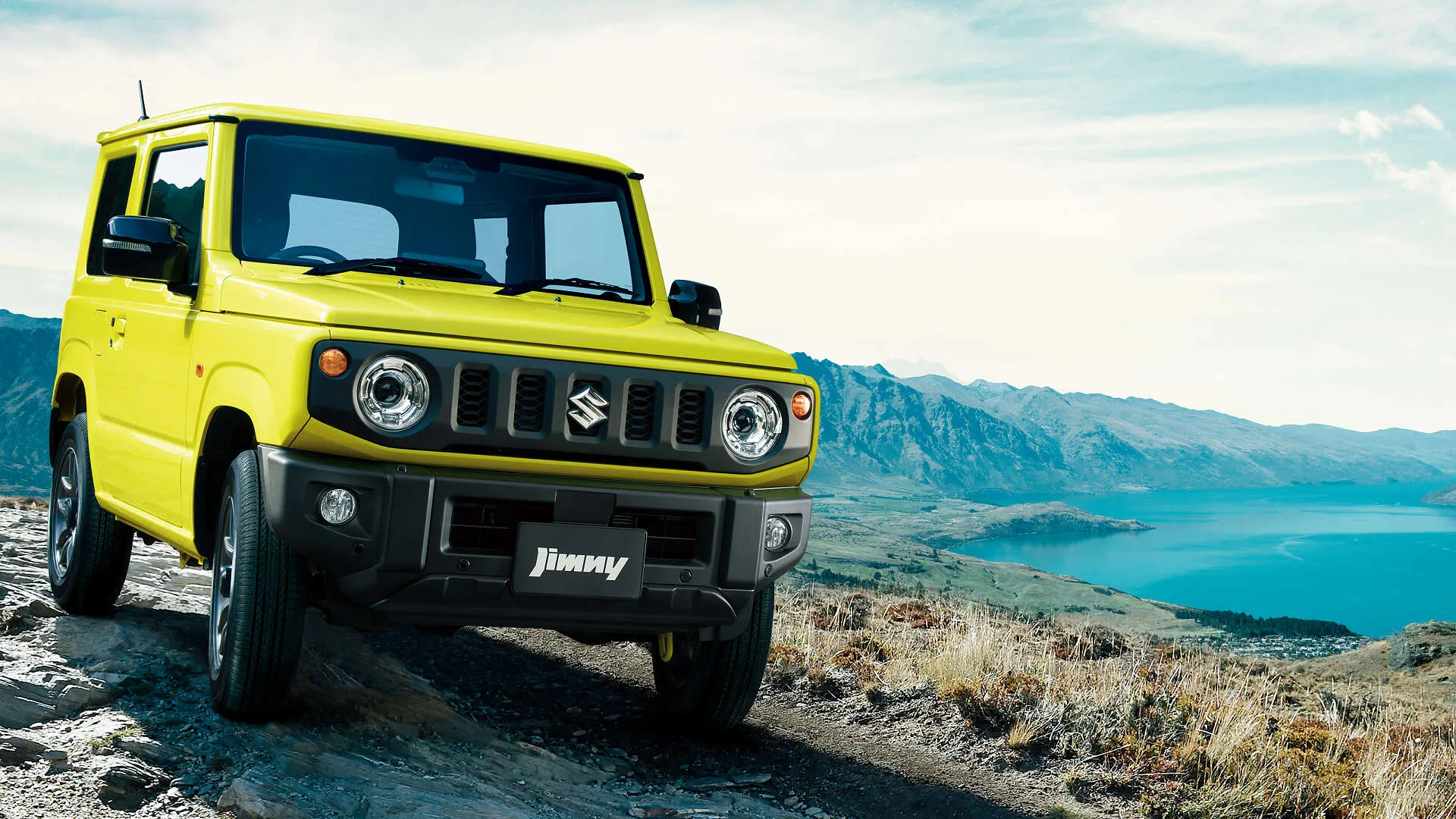 鮮やかなイエローのジムニーが、山道を軽快に走る姿が印象的ですね。