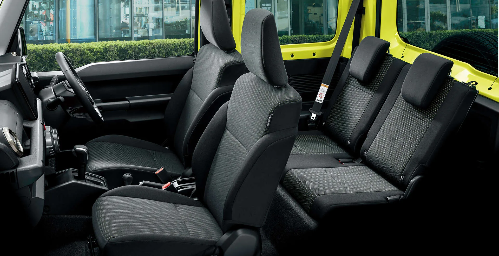 ジムニーシエラの車内に座ると、まず感じるのはこのゆったりとした空間です。運転席から後部座席まで、しっかりとしたクッション性があり、長距離ドライブでも疲れにくい設計になっています。家族や友人とのお出かけにもぴったりで、荷物を積み込む時も広々としているので安心ですね。