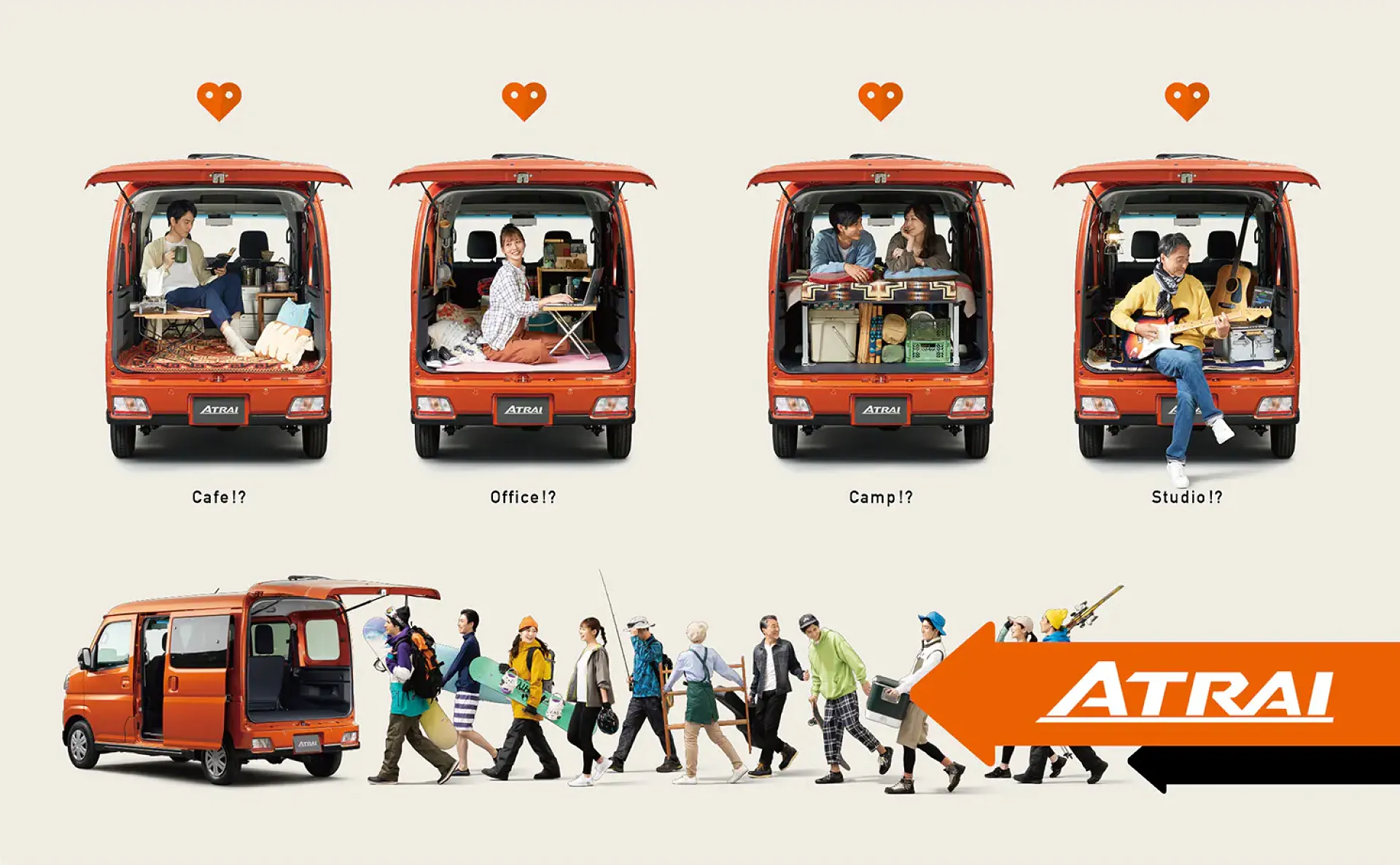 家族で週末のお出かけや、仕事道具をたっぷり積んだ現場への移動など、日常の様々なシーンで活躍するアトレー。