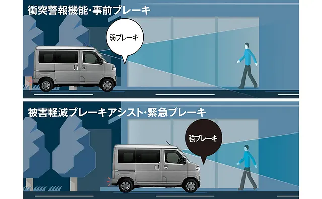 画像にもあるような衝突警報機能や緊急ブレーキアシストがついているので、