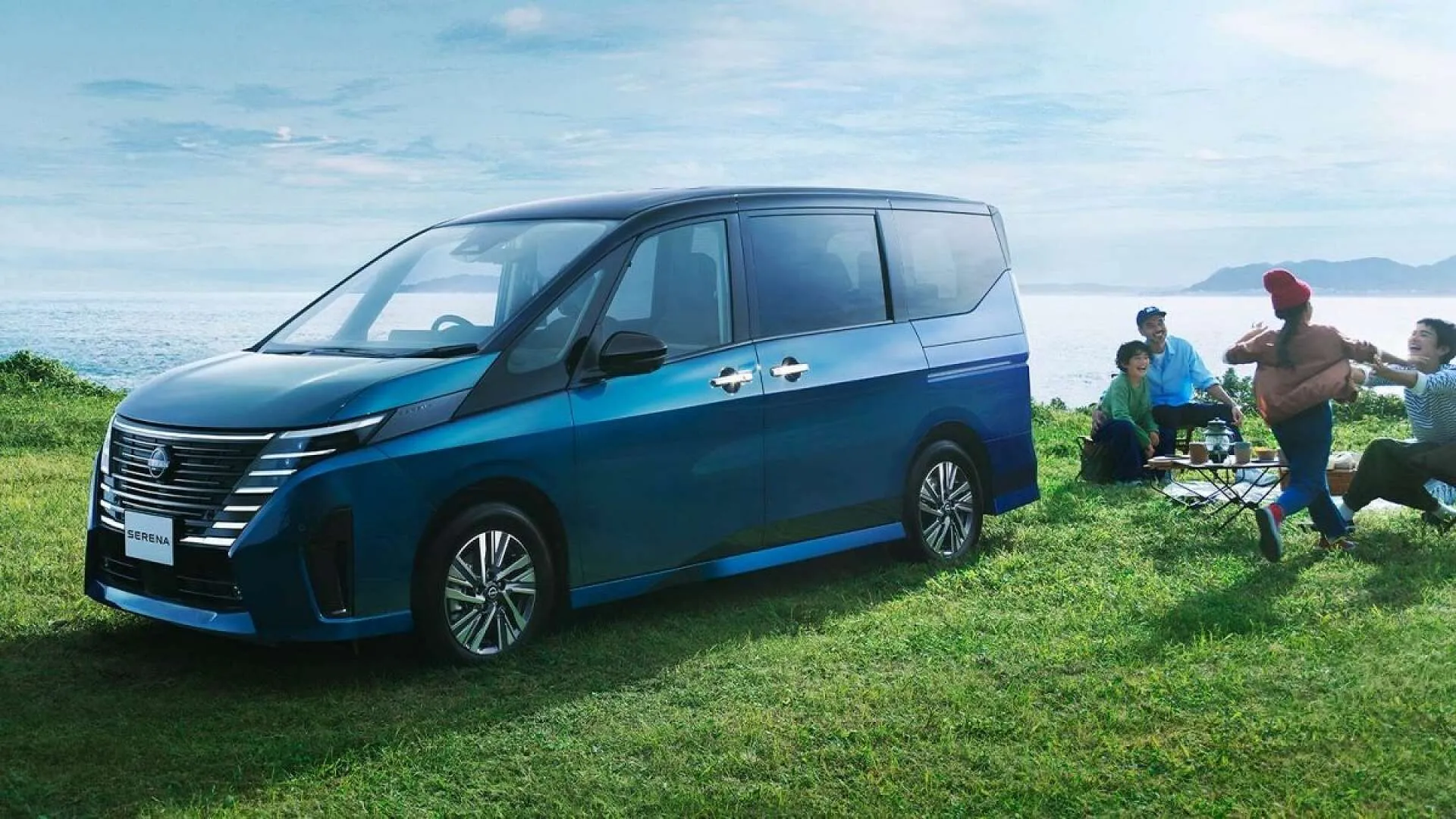 青空の下、海沿いの道を颯爽と走るセレナが印象的な一枚です。