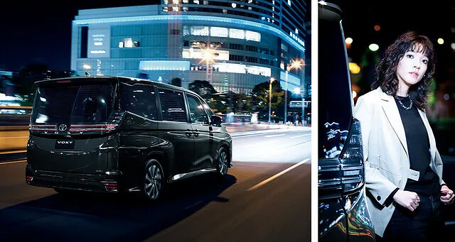 夜の街を軽やかに走るヴォクシーが印象的な一枚です。