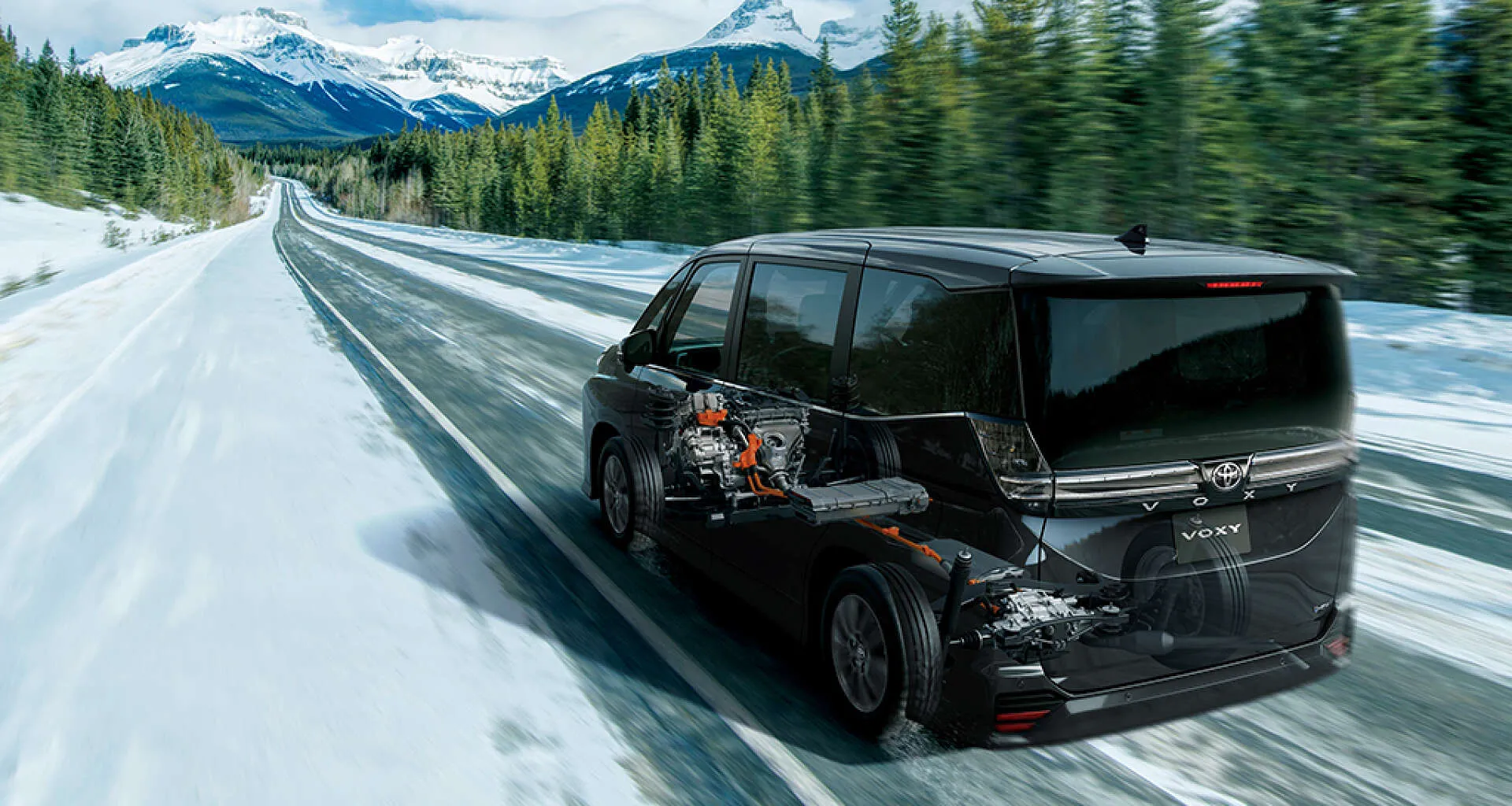 雪景色の中を走るヴォクシーが印象的な一枚です。冬のドライブでも安心して出かけられるよう、先進のハイブリッドシステムや安定した走行性能がしっかり支えてくれます。