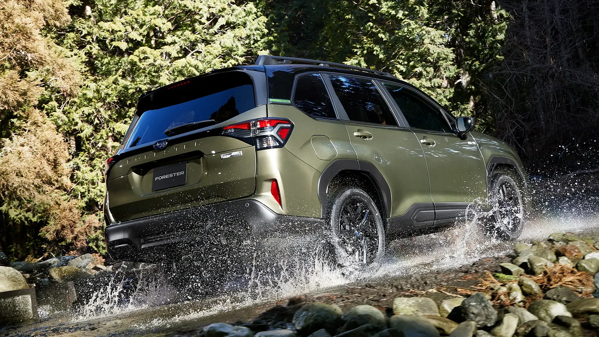 森の中を颯爽と駆け抜けるフォレスターの姿が、休日のドライブに