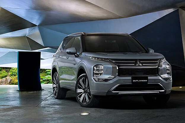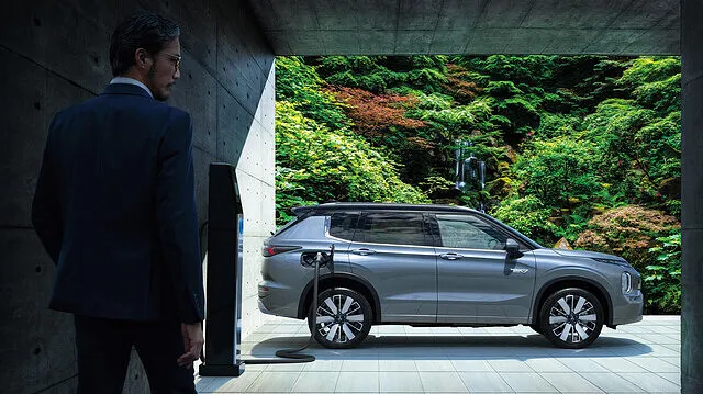 朝の光が差し込むガレージに、堂々と佇むアウトランダーPHEV。