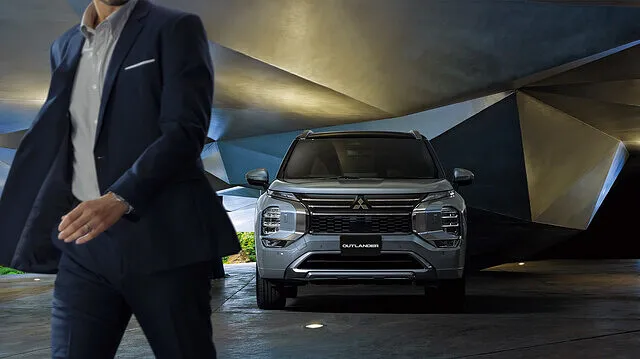 朝の静かな時間、アウトランダーのそばで一息つくビジネスマン。