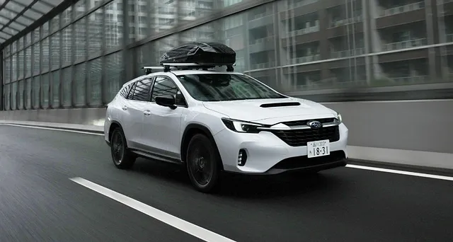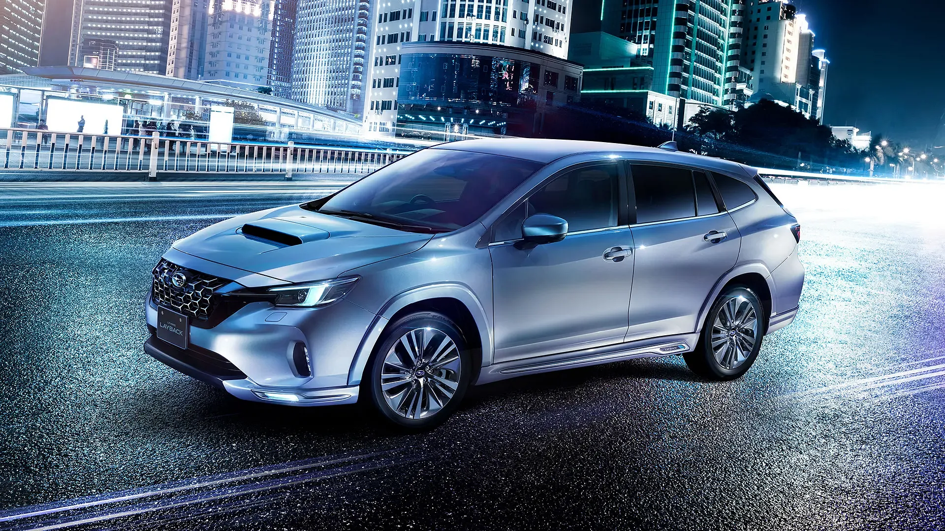 夜の街並みに溶け込むスバル レイバックが、ふとした瞬間に目を引きます。