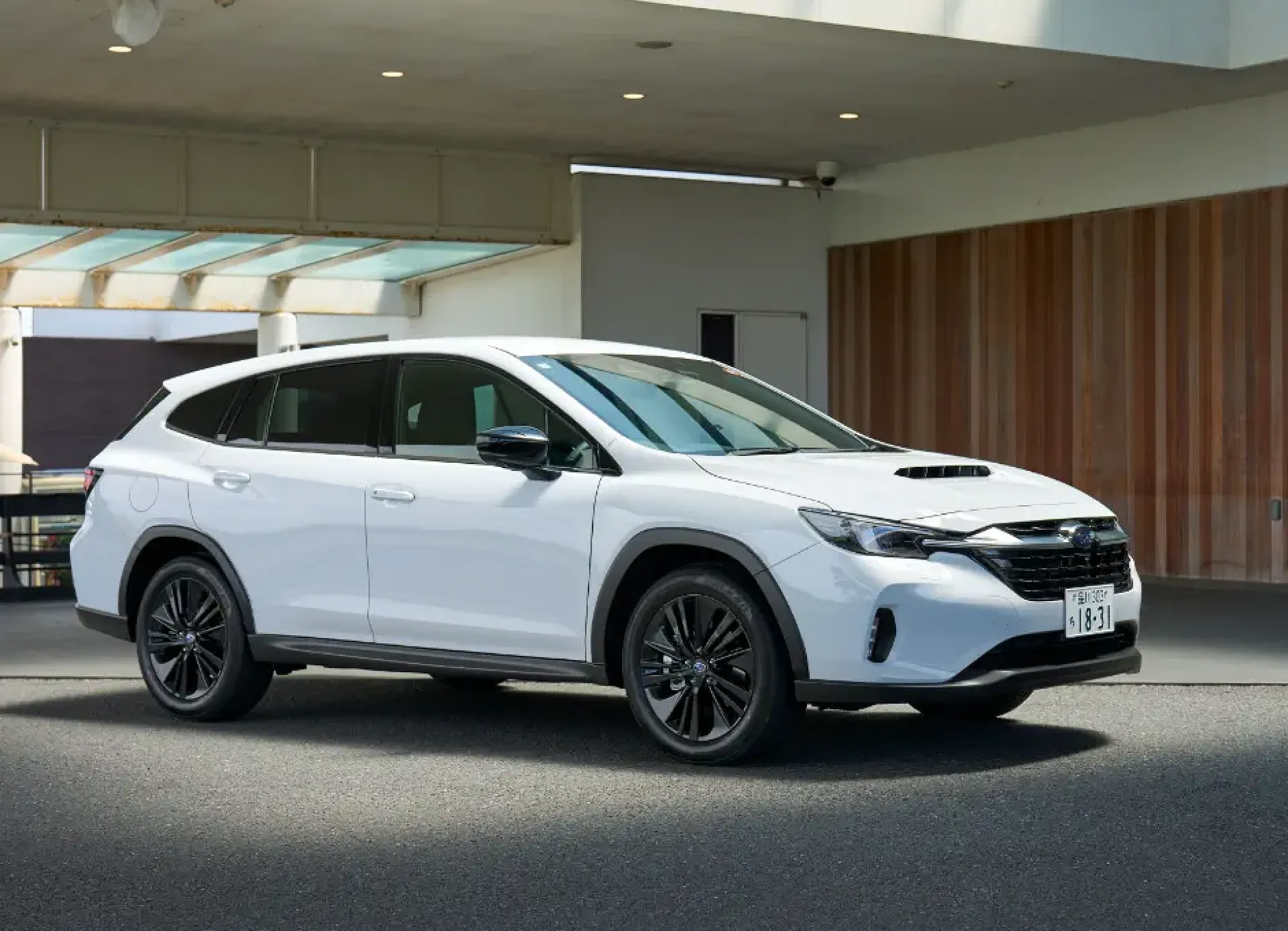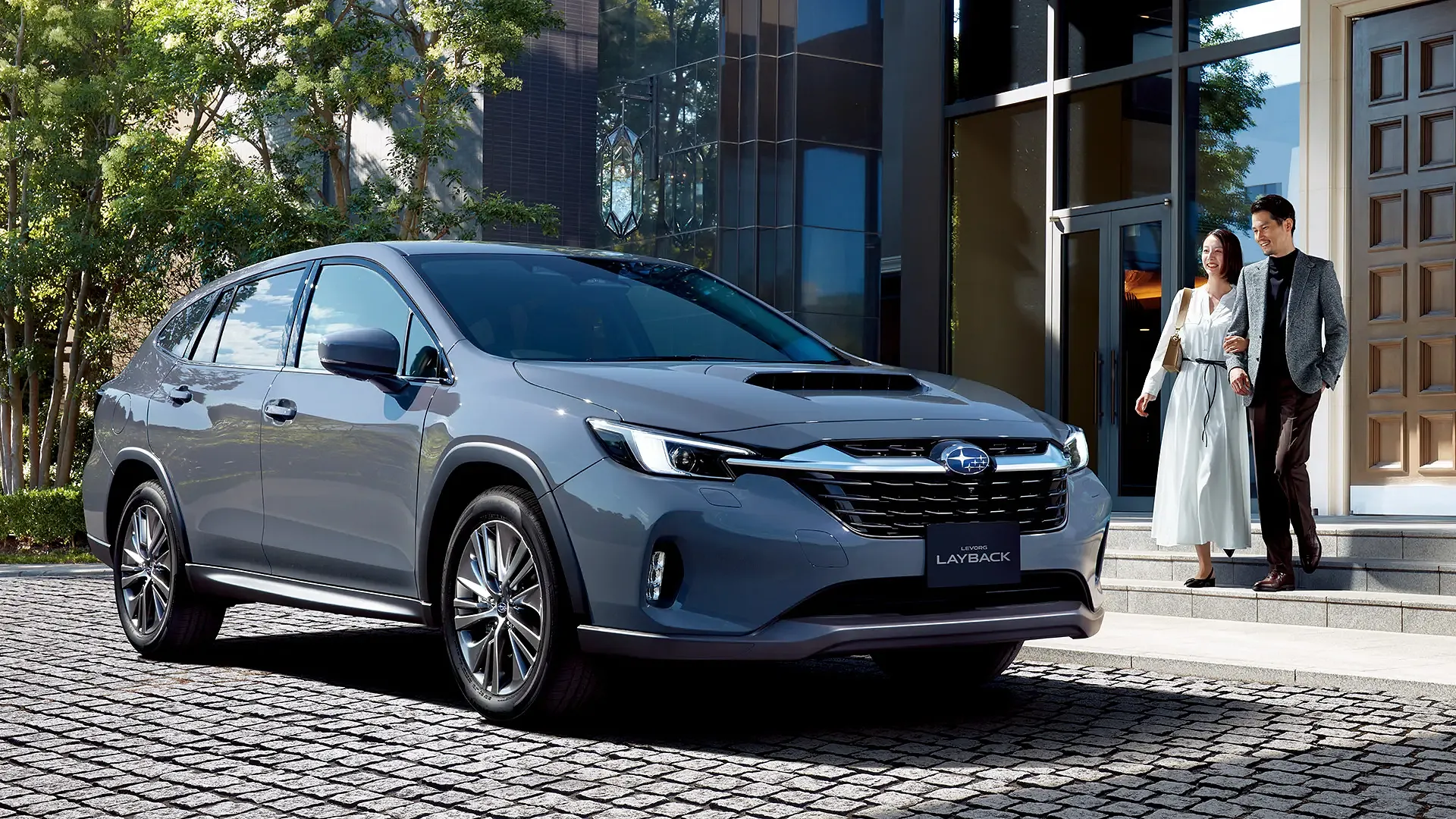 スバル レイバックが静かに佇むエントランス前、