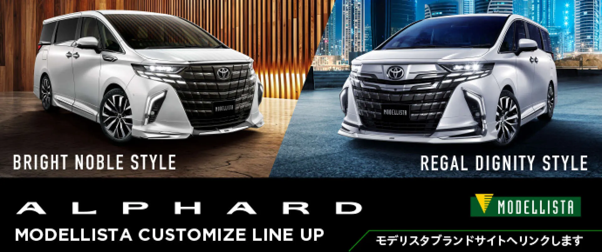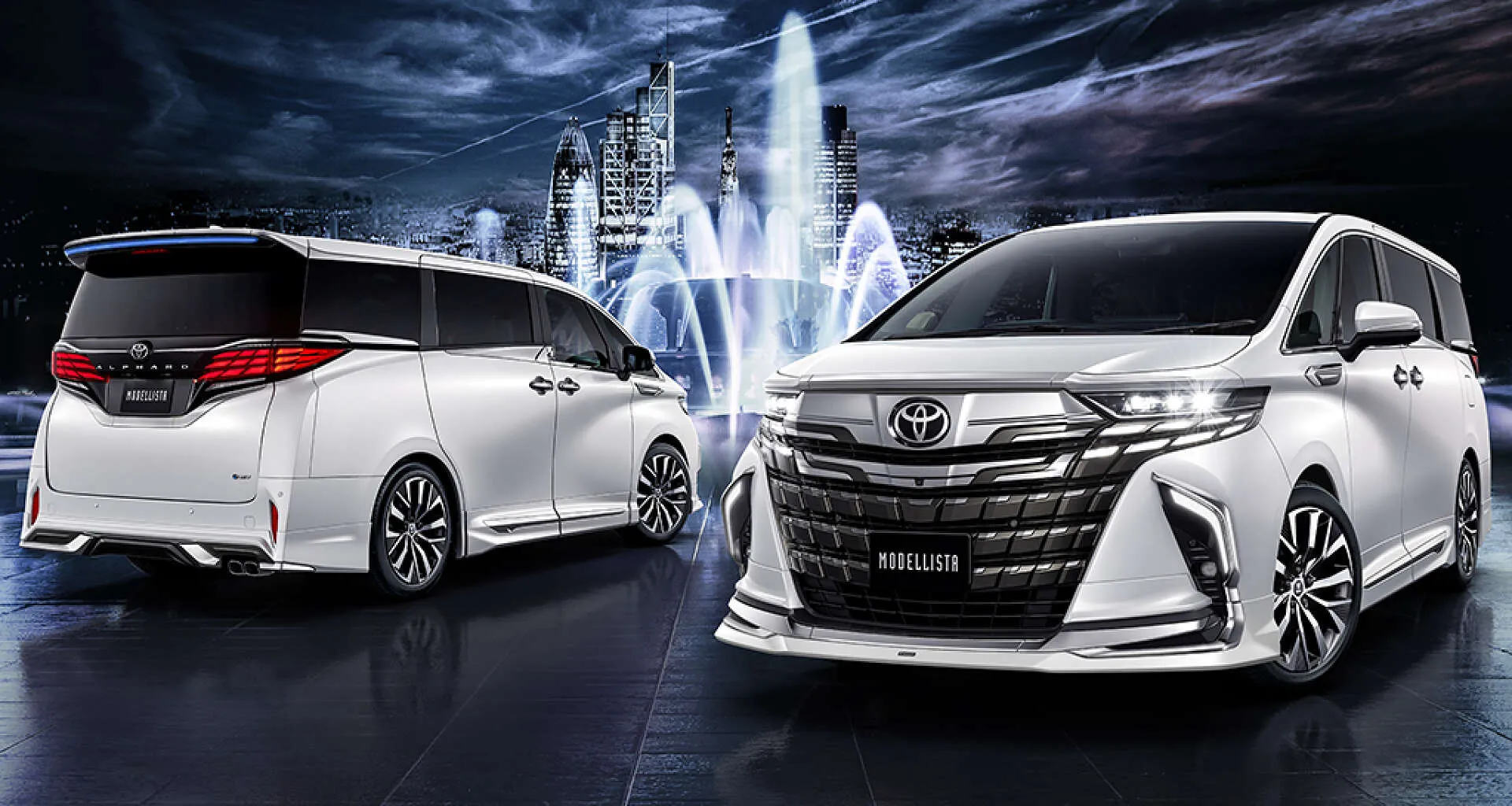夜の街並みを背景に、堂々と佇むアルファードが印象的な一枚です。