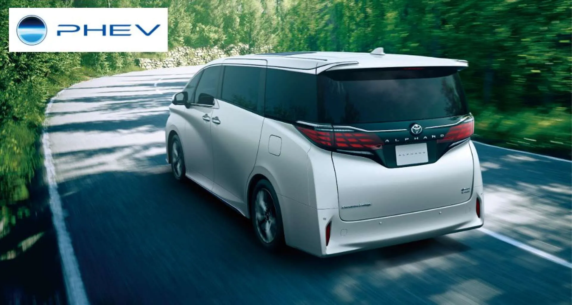 朝の静かな森道を、アルファードがゆったりと走っていく姿が印象的です。
