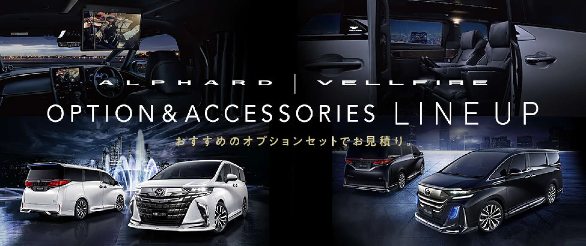 夜景をバックに並ぶヴェルファイアとアルファードの姿が印象的なこの一枚。