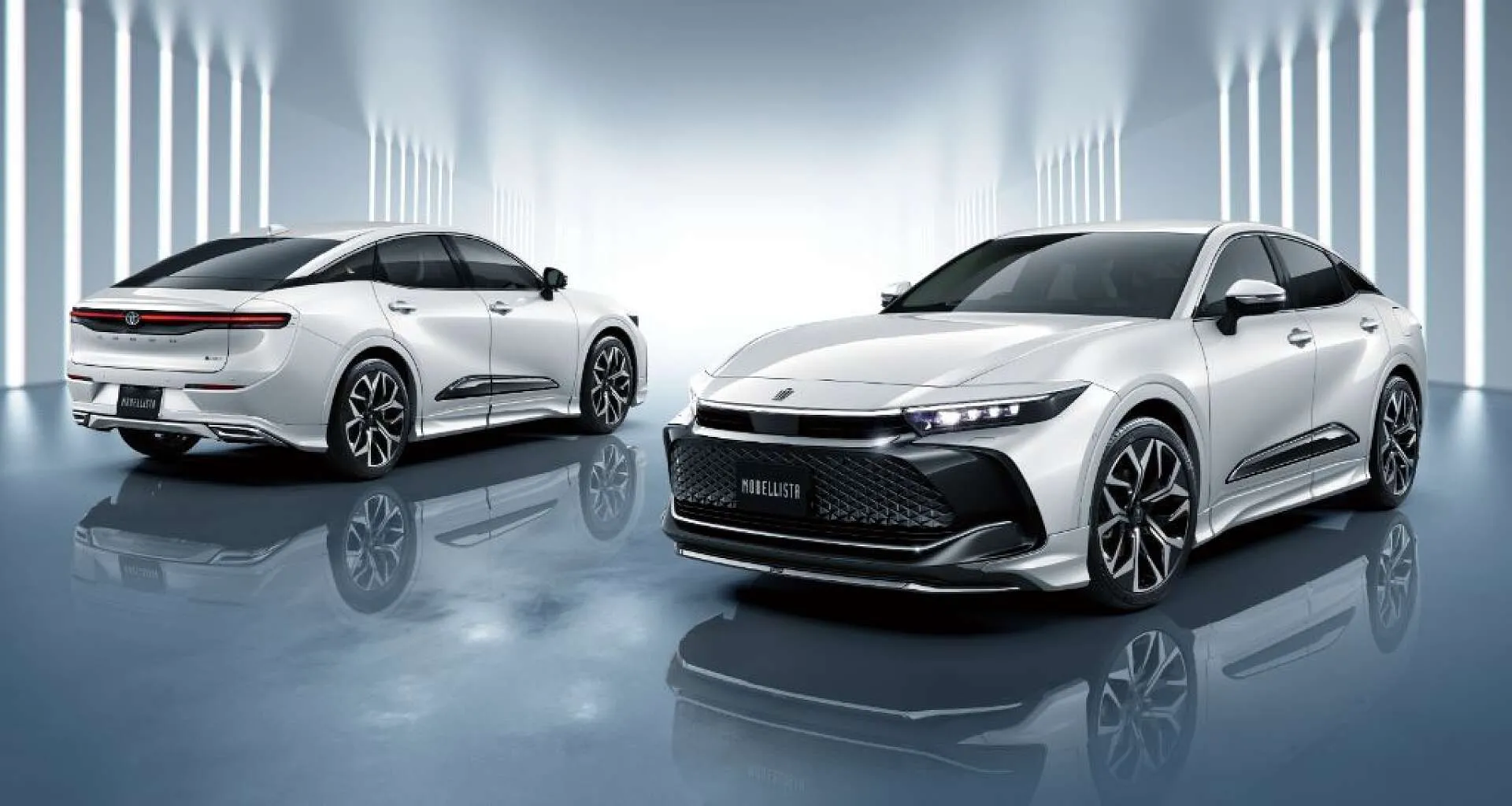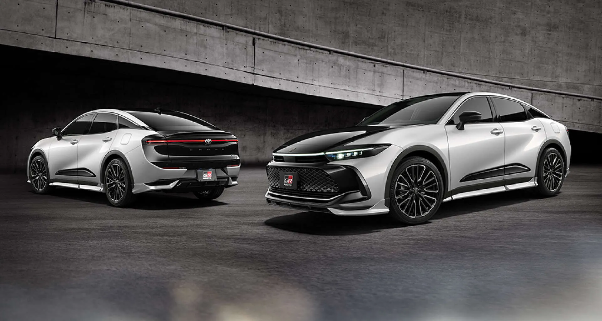 コンクリートの壁を背景に、堂々と並ぶクラウン クロスオーバー。