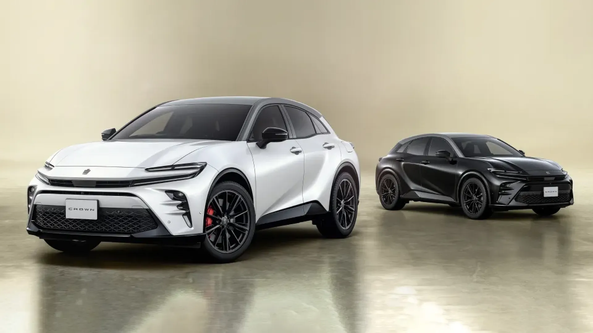 ショールームに並ぶクラウンスポーツの2台。