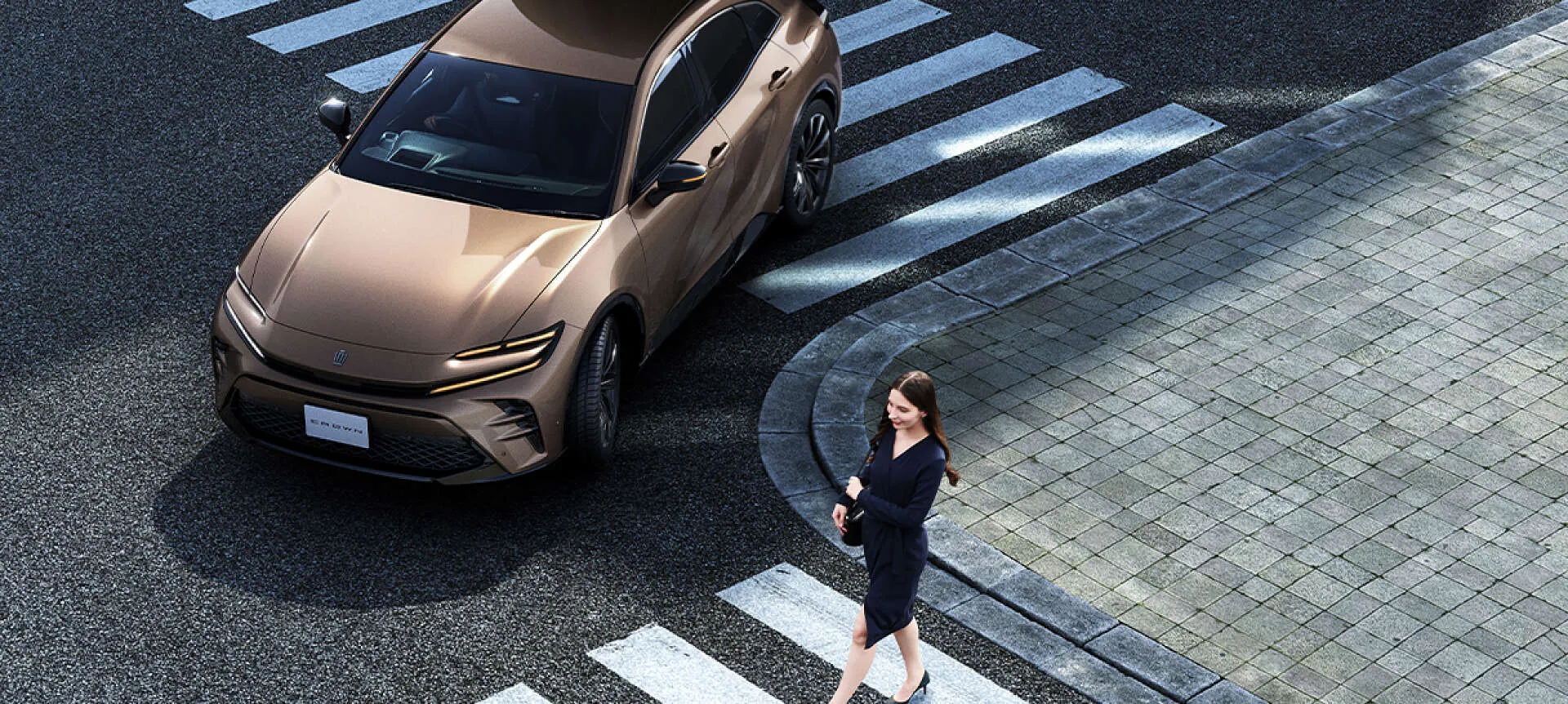夕暮れの道を颯爽と走るクラウンスポーツが、ふと日常に特別な瞬間をもたらしてくれるようです。