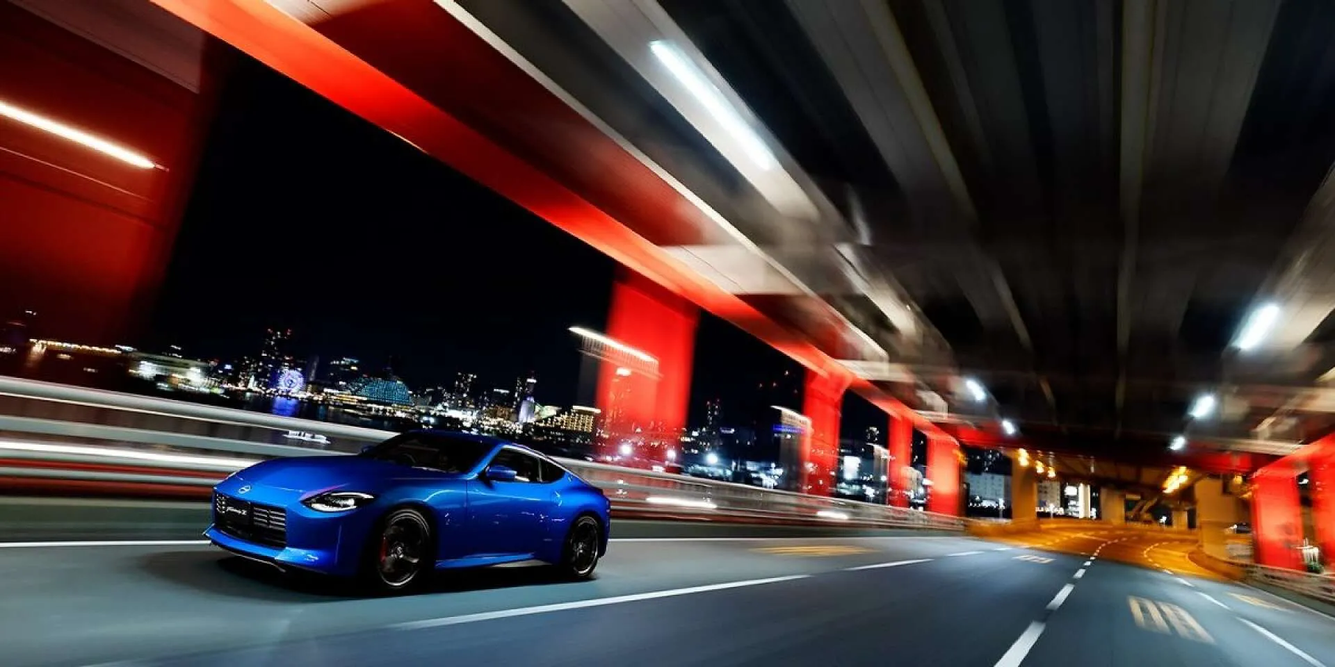 夕暮れの高架下を颯爽と駆け抜けるフェアレディZが、