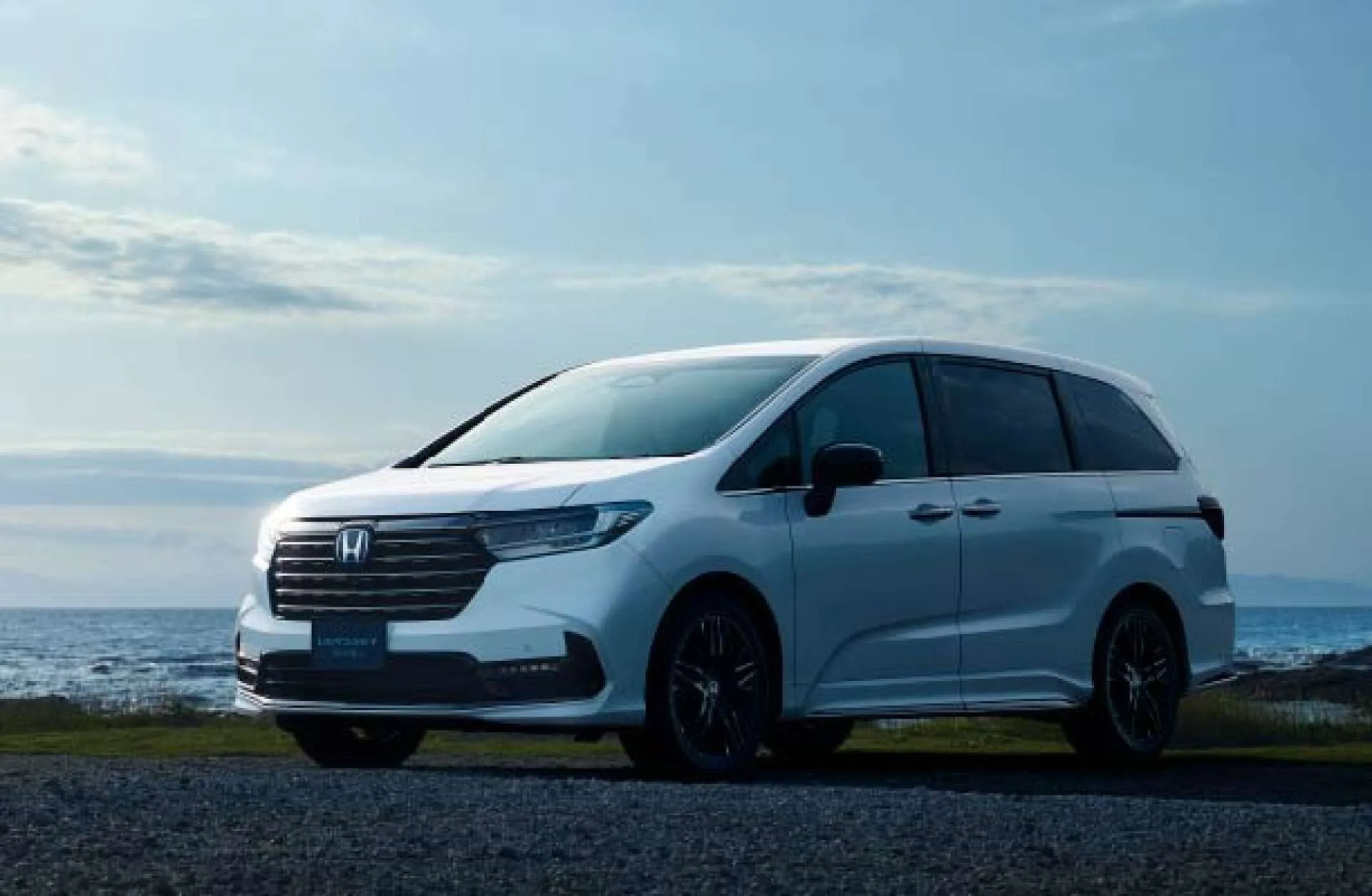 海沿いの道に停まるホンダオデッセイが、ふとした休日の始まりを感じさせてくれます。