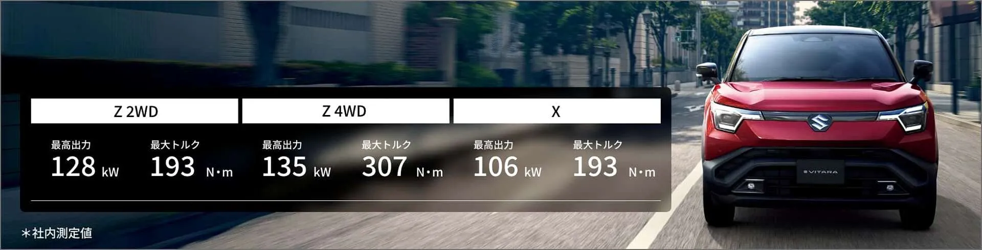 Z 2WDやZ 4WD、それぞれのグレードごとの性能もしっかり用意されていて、