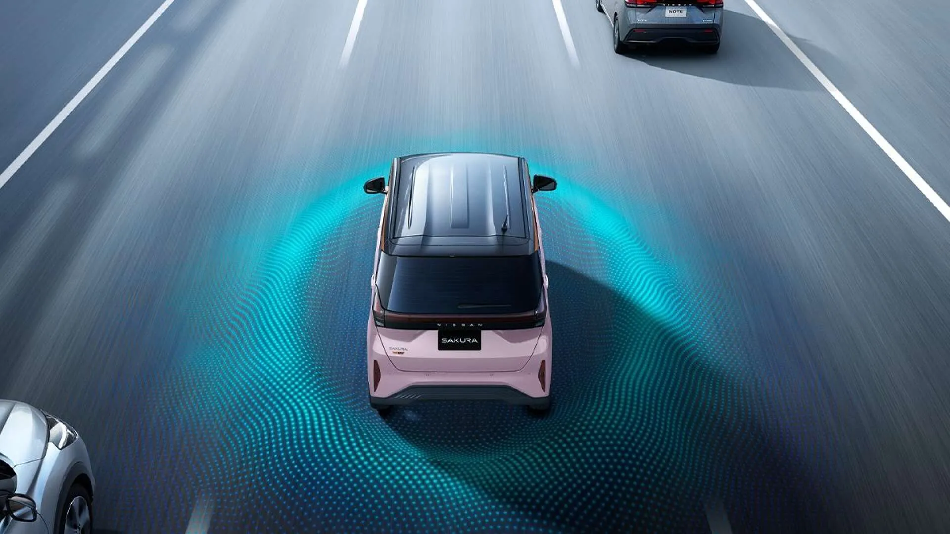 日産サクラが高速道路を走る様子が印象的なこの一枚。